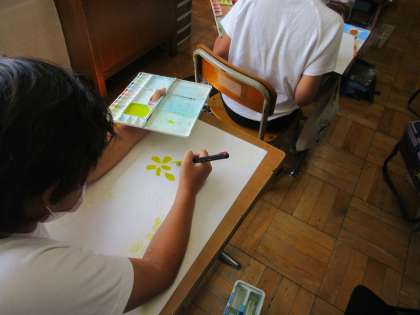 図工では,物語を読んで場面を自由に想像し,絵にしています。
