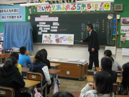 12月8日1校時に非行防止教育を実施しました。山科警察署のスクールサポーター5名にお越しいただき、各教室で非行防止についての学習をしました。学習のねらいは「やって良いこと悪いことを理解し、いつも正しい行動ができる人になろう」でした。警察の仕事とルール、暴力やいじめは犯罪であること、心にブレーキをかけることなど学びました。社会で許されないことは、小学校でも許されません。ルールやマナーを守って誰もが気持ちよく過ごせる学校にしましょう。