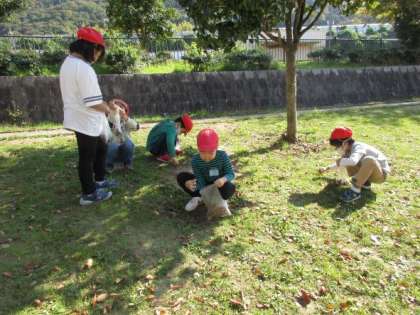近くの公園で,どんぐり集めをしたよ。