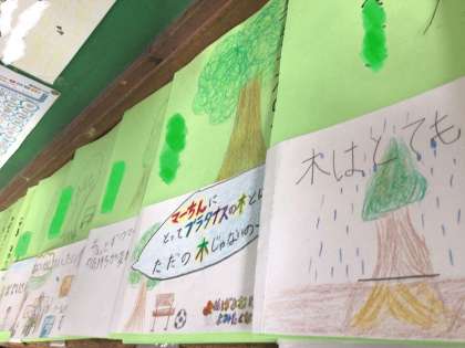 国語でプラタナスの木の学習をしました。学習のゴールには帯にしてお話の魅力を伝えました。思い思いの素敵な帯が完成しました。
