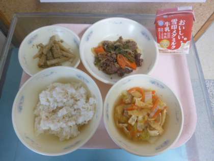 今日も朝から雪が降り、寒い一日でしたが、温かい給食で温まりました。