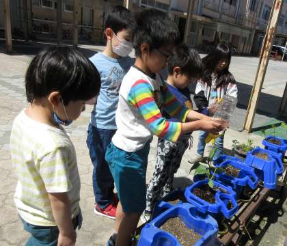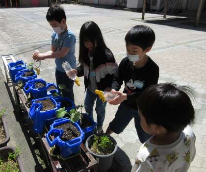 やさいのみずやりをしたよ。
