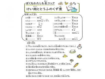 今日は給食カレンダーで「鶏肉ととうふのくず煮」の作り方を紹介しました。おうちでもぜひ作ってみてください。