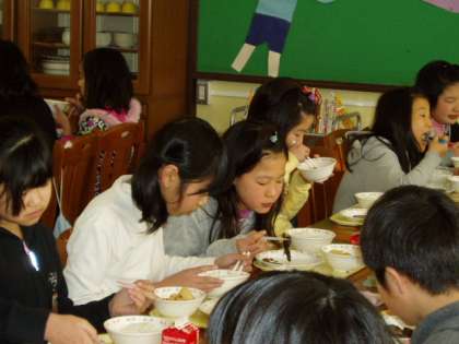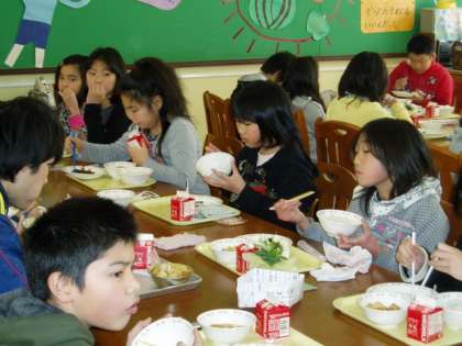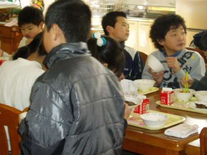 2月2日(木)今日は久しぶりにもぐもぐルームでの給食でした。教室とは違った雰囲気での給食はいつも以上にたくさん食べていました。会話がはずみ,とても楽しい給食時間でした。