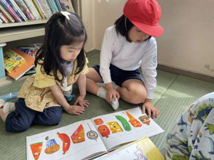どくしょタイムに ほんをよんでいるよ。