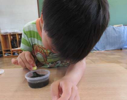 てづくりのスライムにさてつをまぜて