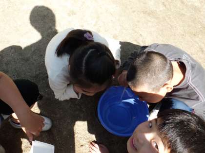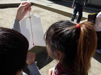 水温と気温のはかり方を事前に学習して実際に外にはかりに行きました。