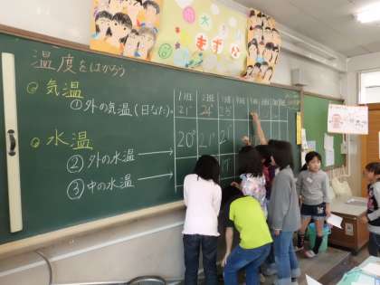 5月になり暖かくなってきたということで理科の授業では,温度をはかる勉強をしました。