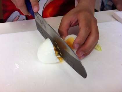 ゆでたまごを切る瞬間はちょっとドキドキしますね。
