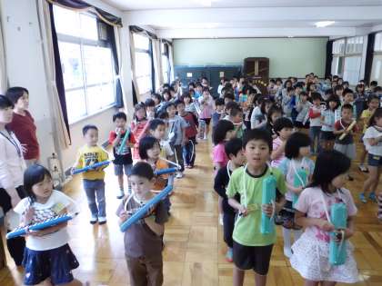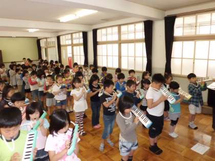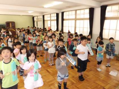 1年生を迎える会にむけて,鍵盤ハーモニカや歌,言葉の練習をしています。