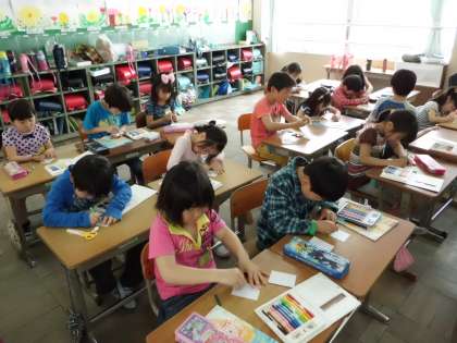 1年生を迎える会で,1年生にプレゼントを渡します。1年生に楽しんでもらうために,ピョンピョンがえるを作りました。なかなかとばなかったり開くのが遅かったりしたので,色々工夫してみました。1年生が喜んでくれるといいですね。