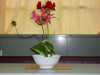 16日、部活動「華道部」が今年度初めて花を生けました。