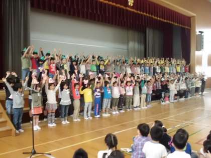 5月18日(金)1年生を迎える会をしました。各学年言葉や歌、リコーダー、スタンツなどで1年生を楽しませました。そして、各学年からプレゼントです。最後に1年生からお礼の言葉と歌でした。大宅の一員として、いっしょに楽しい学校にしていきましょう。