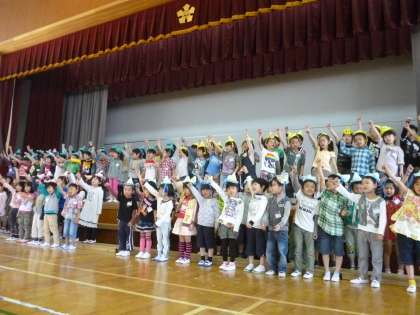 1年生もお礼に「ともだちさんか」を歌いました。今日まで一生懸命練習をしてきました。初めての発表でどきどきでした。しかし、本番では、120点の笑顔と歌とダンスを披露することができ、子どもたちも達成感に満ち溢れていました。