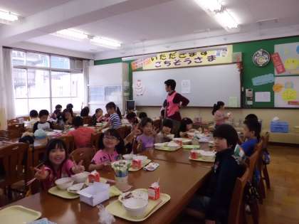 夏休みまでに全クラスがもぐもぐルームで給食を食べる予定です。