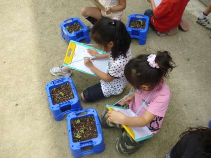 今朝水やりをしている時に,「芽が出てる!」との声。