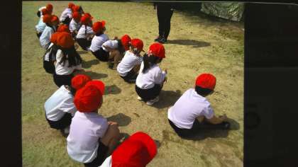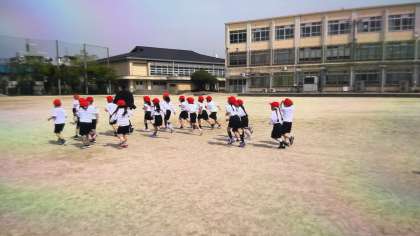夏の日差しのような暑い中,かけっこあそびをしました。