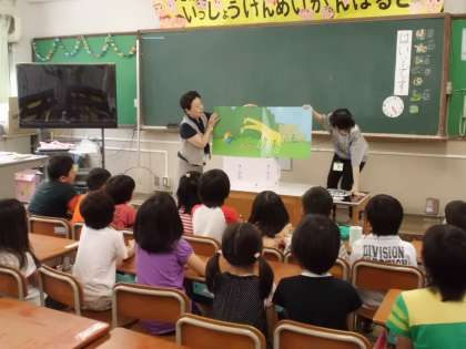 地域の図書ボランティアの方に読み聞かせをしていただきました。明日また1年生にしていただきます。