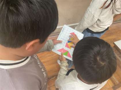 自分で作った形を友達と共有したり、友達の「いろいた」と合わせて大きな形をつくったりすることができました。