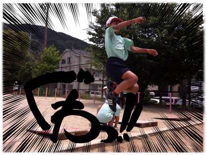 自分の歩幅に合う助走距離を探しながら,ななめ上にとぶ練習をします。