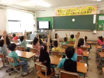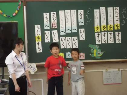 採用1年目研修として国語科の授業を公開しました。教育委員会から指導主事が来られて、指導を受けました。デジタル教材を活用して導入とし、「は」「を」「へ」の使い方の学習をしました。準備が十分にされており、子どもたちはよく学習していました。