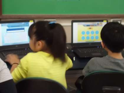 小中一貫教育の一つに、中学校の先生による出前授業があります。5年生に一クラスあたり月一回パソコン学習をしています。マウスの使い方、文字入力の仕方など楽しいソフトを使って学習しました。