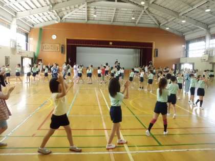 7月28日(土)サマーフェスティバルの最後に全員で山科音頭を踊ります。今日は女性会の皆様に来ていただいて、3年生に山科音頭を教えていただきました。当日が楽しみです。