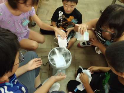 風の力でいろいろな動きをする楽しいあそぶものを作りました。