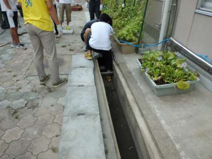 先日理科室横の溝を掃除しました。そのとき古くなっていて割れた溝蓋を新しいものに代えました。少しきれいになりました。