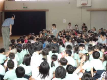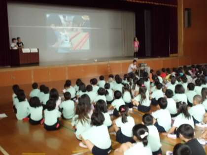 昨日大宅タイムで5年生が長期宿泊の様子を発表しました。報道特集という設定で、現地からのレポートとし、それぞれの活動を報告しました。大きな声でわかりやすい発表でした。また、発表に対して、感想を述べてくれました。