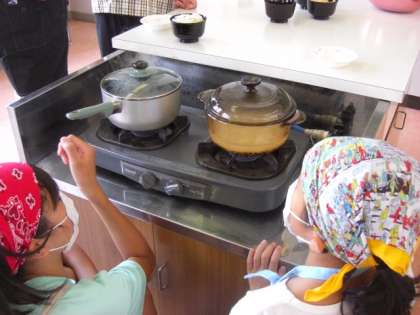 「炊きたてのごはんは、甘いしやわらかくておいしいね。こんなにおいしいとはびっくり!」という子どもたちの声がたくさんありました。お鍋ならではのおこげも大人気でした。
