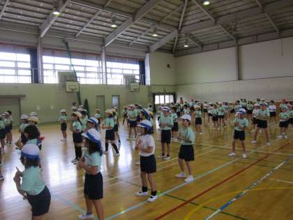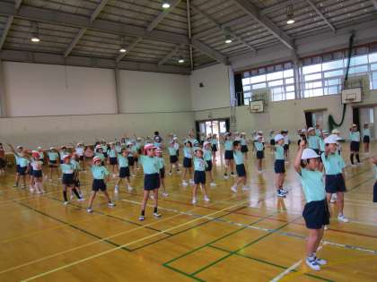 いよいよ運動会の練習が始まりました。今年のテーマは「忍者」です。すばやく駆け抜け,手裏剣を投げ,印を結びます。練習を始めてばかりで,覚えていないところが多いですが,楽しんで忍者ダンスをしています。