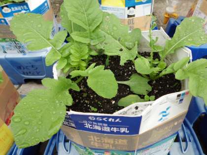 しばらくたって、大根らしい大きな葉っぱに育ってきました。