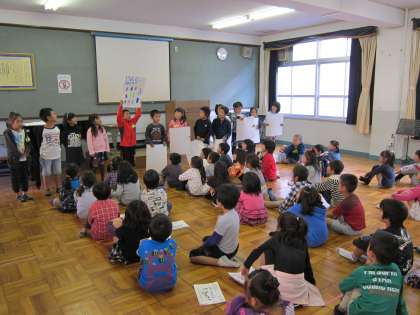 次の大宅タイムは2年生の発表です。自分たちで作った九九のなぞなぞを使って,今までの頑張りを見てもらいます。5の段から,6の段,7の段…と大きくなるにつれて,自信がなくなっていく子が多い様ですが…本番までに,お風呂でもトイレでも九九を練習して本番では,自信を持って発表できる様に頑張ります。