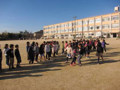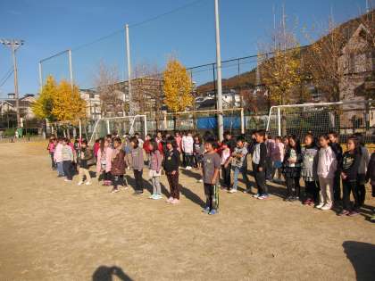 1日の中で体育館もふれあいホールも割りあてがない時は,運動場で練習を頑張っています。本番が近いので,少しの時間も無駄にできません。運動場は,体育館とは違って,声が響きません。大きな声を出す良い練習になったようです。
