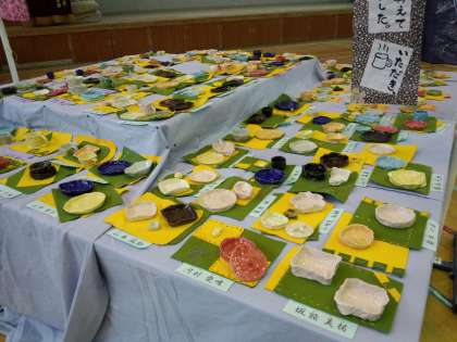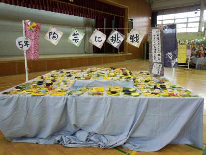 明日から毎年恒例の作品展です。今日のお昼から準備を始めました。5年生は,陶芸作品とその作品を置く敷物をフエルトで作りました。