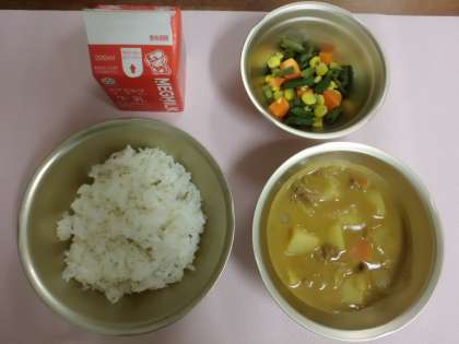 給食のカレーはルウから手作りです。