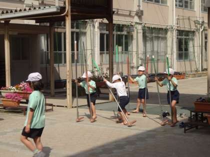 今日は体育で一輪車と竹馬をしました。始める前に使っていい場所と、安全な使い方を確認してLet's try!みんな楽しそうに遊んでいました。一輪車も竹馬もこれから練習して一年生に教えてあげたいですね。明日はあそびをしようと思います。