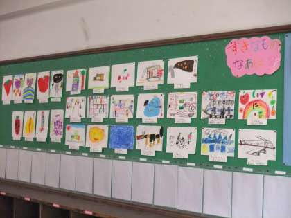 また,教室の掲示板には入学してからこれまでの子どもたちの作品を展示しようと思っています。ぜひご覧ください。
