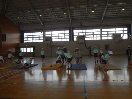 マットの準備は班でしました。すばやく安全にできたのでこれからの体育の授業が楽しみです。