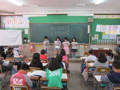 それぞれの班で工夫の仕方を考えて読んでいました。一人で工夫するのとは違って,また読み方の工夫に幅ができましたね。