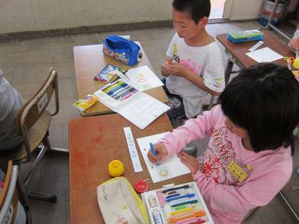 まずは,自分の名前の頭文字のカードをもらいます。