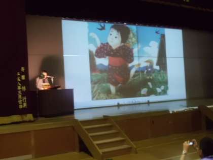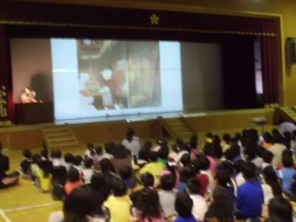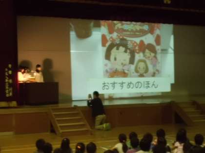 学校運営協議会理事長の谷岡様から672冊の図書を寄付していただきました。今日はその感謝の会を行いました。図書委員会からおすすめの本の紹介や本の読み方についての諸注意がありました。最後にいただいた本の中から「読み聞かせ」を大石進先生にしていただきました。いただいた本をたくさん読むことが恩返しになると思います。