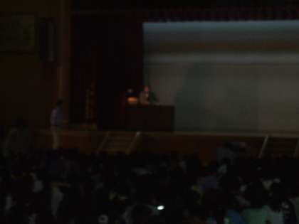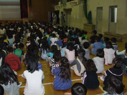 月曜日の朝会のとき,たくさん図書を寄贈してくださった谷岡様への感謝の会がありました。そのときに大石先生に「かっぱ」という絵本を読んでいただきました。面白い場面があったり,怖い場面があったりして子どもたちは真剣に聞いていました。