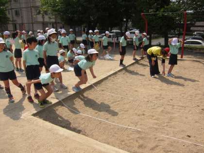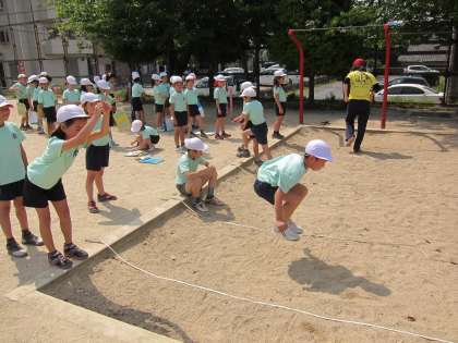 今日の体力テストでは,ソフトボール投げと,立ち幅跳びを計測しました。立ち幅跳びは,たくさん距離を飛ぼうとするとこけてしまう様で,その力のバランスが難しい様です。ソフトボール投げは,ドッジボールとは違って,上をめがけて投げるのがコツみたいです。みんな,それぞれの工夫を考えながら,頑張っていました。
