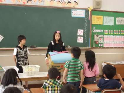 今日は,5年生の各クラスの代表がプレゼントを届けると,1年生はめいいっぱいの笑顔と,大きな声でのお礼を返してくれました。