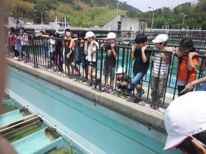今日の午前中は新山科浄水場に行きました。琵琶湖からの水がみんなのお家にどのような行程をへて届けられるのかを見学しました。どんどん水がきれいになっていく様子が見学できてよかったです。急速濾過池を洗浄するところも見せてもらい感激していました。