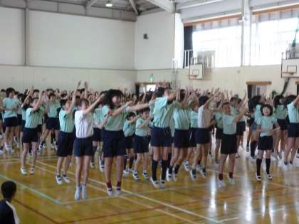 5年生の出し物は、お迎えの言葉と「女々しくて」のダンスです。
