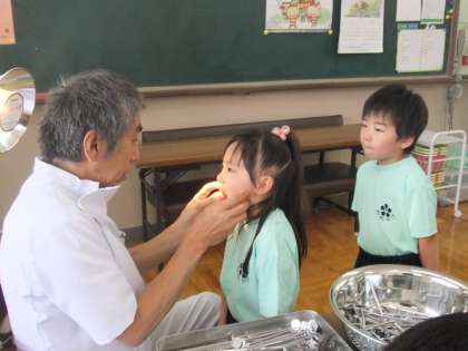 歯科検診がありました。学校歯科医の先生に検診していただきました。