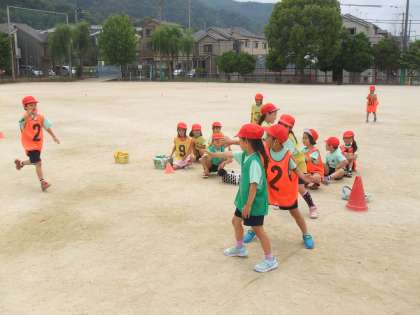 同じチームの仲間がげきをとばします。スタートダッシュに成功したり,相手チームをぬかしたり,ぬかされたり,途中でバトンを落としてしまったりと,とても白熱した練習でした♪